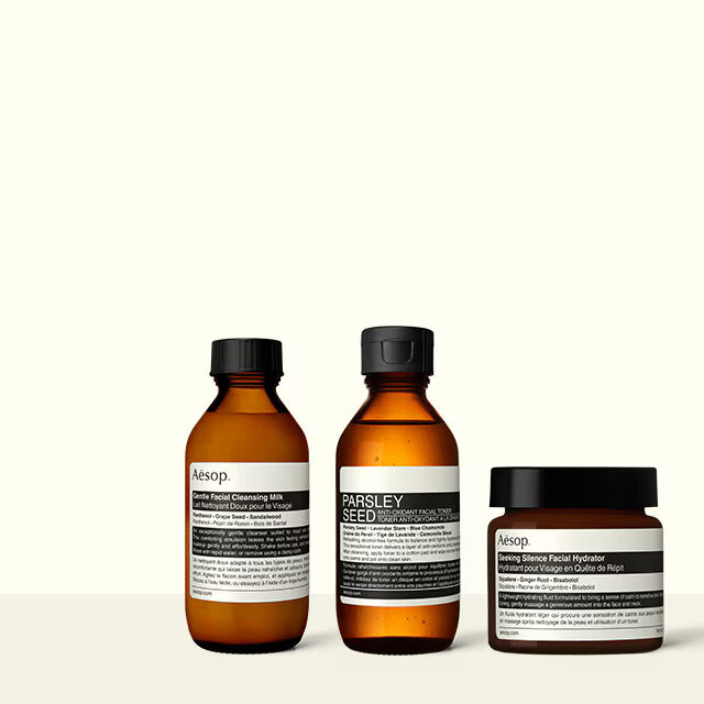 Aesop 研發了一系列適合乾性肌膚人士的保濕產品,其中 煥采滋潤精露是一款非常出色的臉部保養油,適合偏愛輕盈肌膚感受的人們。至於臉部精露(油)以外的其他質地選擇,我們推薦具舒緩功效的 香芹籽抗氧化面霜 和 山茶核仁滋潤面霜 。每一款配方都蘊含了精心設計的植物萃取滋潤成分,展現柔軟美好的質地與膚觸,呈現迷人的霧面光澤。富含脂肪酸的櫻草保濕面霜可以賦予更加柔軟的使用效果──這款散發花香、大地、草本氣息的配方,非常適合在寒冷或涼爽的氣候,也是中性至乾性肌膚類型的理想選擇。