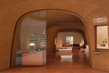The original Southland retail centre, designed in 1968 by Melbourne architects Tompkins, Shaw and Evans, was a modernist showpiece nestled in the south-eastern suburbs of the city. Aesop Southland pays homage to this significant architectural era with a contemporary interpretation of the catenary archway that was a key feature of the mid-to-late 20th-century International Style.