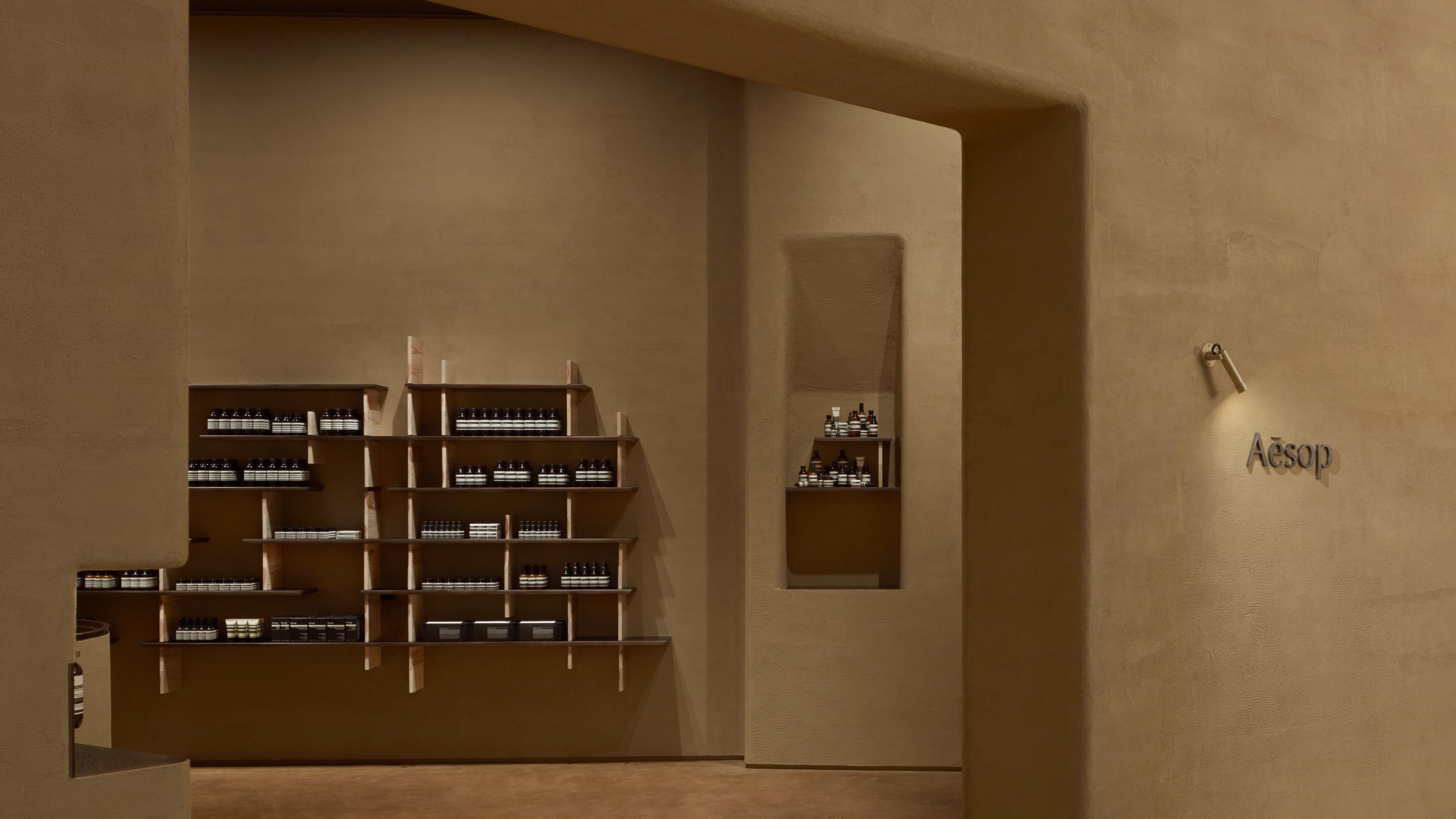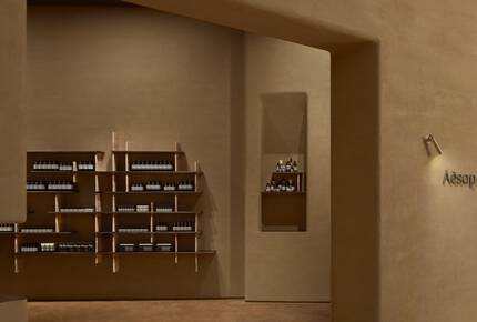 Aesop Nishinomiya Gardens, situated within the Hankyu retail centre, takes cues from the surrounding local environment and time-honoured Japanese artisanship. Created by our in-house Design Department, the interior is a haven of halcyon tones and rough textures.