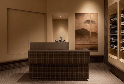 Aesop「藏香櫃」巧妙地隱藏在空間後方,展示著我們與眾不同的香水系列。在店鋪入口旁邊的溫暖燈光中設有浴室櫥櫃,在下方則是家庭尺寸的水槽區域,為顧客提供了一個隱密舒適的角落,盡情體驗一系列獻給肌膚、秀髮、身體的保養配方──受過專業訓練的銷售顧問會依據不同的個人需求,提供量身定制的產品推薦。