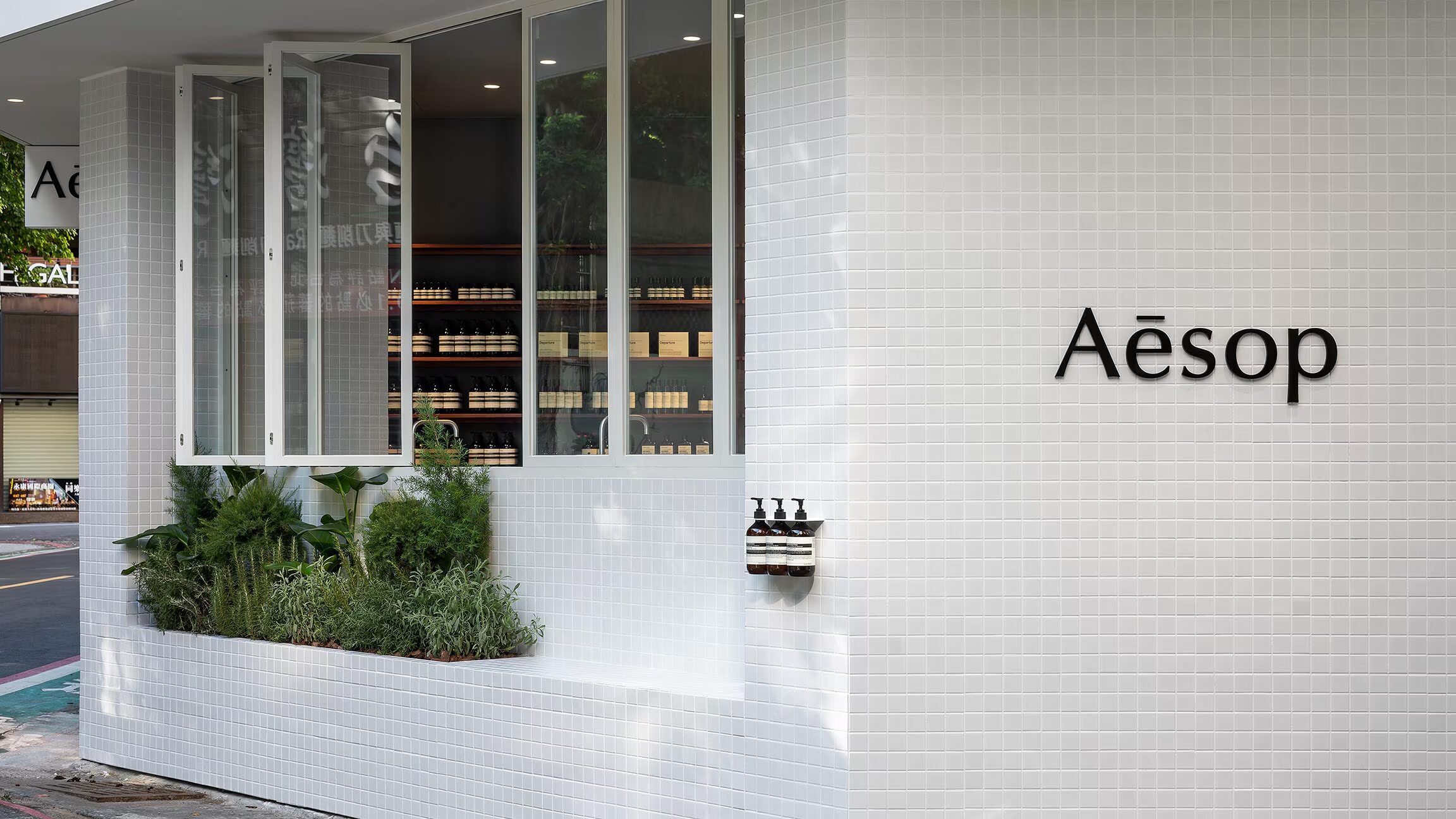 概念店外牆經過深思熟慮的設計,完美嵌入了座位區,可以提升永康街道漫遊者的步行體驗,提供一個舒適的會面點──在城市探索旅途中,小憩片刻再出發。在鋪滿瓷磚的空間之內,Aesop 打造了一座香氛植栽花園,精選了可以吸引鳥類和蝴蝶來訪的植物,成為周遭生態系統不可或缺的一環。