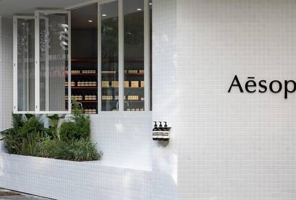 由我們品牌內部設計團隊精心打造,座落於台北的店舖──「Aesop 永康概念店」融合了「外」與「內」的意象,巧妙地結合了當地街區的建築語彙。其空間設計靈感,源自於風雨歲月在公園旁老屋所留下的痕跡,以及城市潮濕氣候孕育的蔓蔓植物生命──以深綠質感色調、重複美學的瓷磚,呈現獨特的設計。店舖空間無縫地延伸到步道街弄,模糊了顧客及行人的界線。